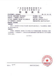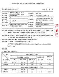 | 廣東省產(chǎn)品質(zhì)量監(jiān)督檢驗(yàn)中心-銀康二氧化鈦殺菌檢測(cè)報(bào)告 檢測(cè)表明:金色葡萄球菌的殺菌率在24小時(shí)內(nèi)高達(dá)99.74% 大腸埃希氏菌的殺菌率在24小時(shí)內(nèi)高達(dá)99.60% |