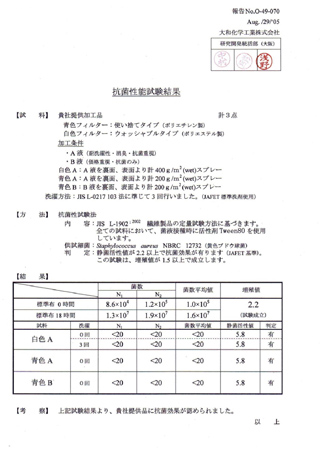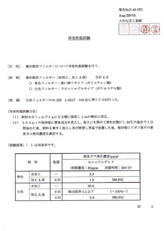 | 日本大和化學(xué)工業(yè)研究所除臭殺菌檢測報告 |