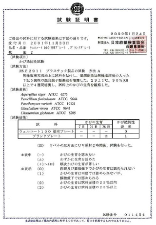 日本大和化學(xué)工業(yè)研究所防霉及抗真菌檢測報告 |