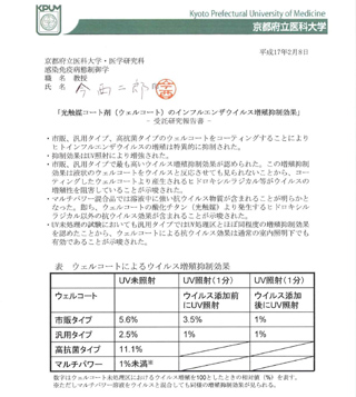 京都府立醫(yī)科大學(xué)(H1N1) 流感殺菌-銀康二氧化鈦的檢測報告 檢測表明:流感(H1N1)的降低率1分鐘內(nèi)高達99% | |