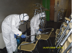 操作:對(duì)滋生霉菌的空間進(jìn)行二氧化氯霧化清毒。