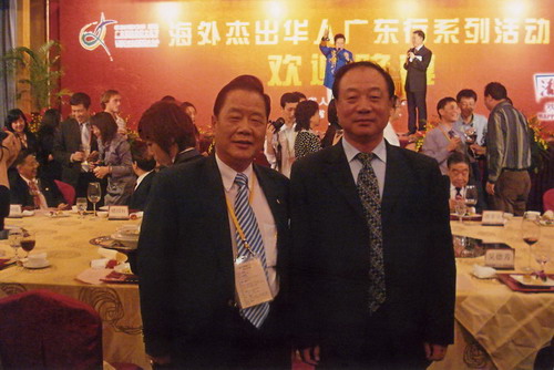 廣東省僑聯(lián)主席王榮寶同董事長何國才先生(右)合影