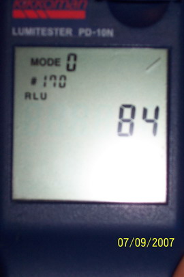 處理前表面細(xì)菌采樣 處理前檢測得表面細(xì)菌數(shù)為88264RLU