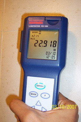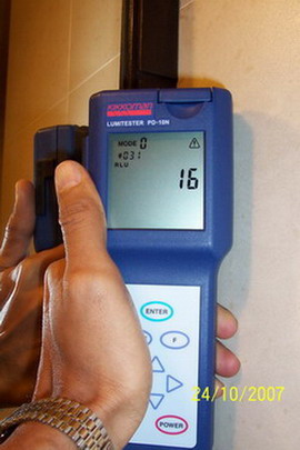 處理前表面細(xì)菌數(shù)采樣 處理前測得表面細(xì)菌數(shù)為22918RLU