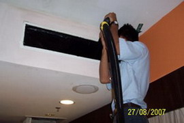 清洗前的FCU的出風(fēng)口 工程人員正在吸出風(fēng)口的塵埃