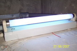 裝上UV等來啟動(dòng)光觸媒工作 工程人員正在表面噴涂銀康光觸媒和納米銀