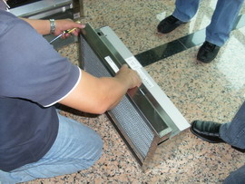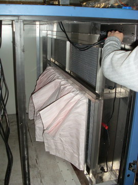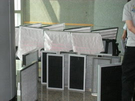正在安裝過濾網(wǎng)的框架                      安裝好DF過濾網(wǎng)的風柜