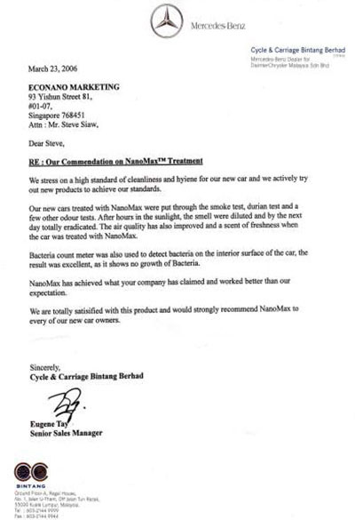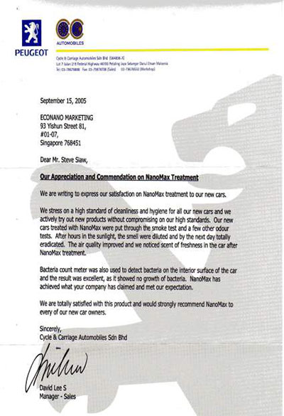 新加坡各品牌汽車對(duì)我司產(chǎn)品實(shí)用效果頒發(fā)認(rèn)證書(shū) ↓