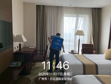 2020年11月16日-18日,銀康對(duì)廣州白云國際會(huì)議中心-水務(wù)論壇活動(dòng)現(xiàn)場(chǎng):酒店客房、水務(wù)論壇珠江廳、東方廳、分會(huì)場(chǎng)以及餐飲包廂進(jìn)行防疫消毒服務(wù)。以下是進(jìn)行消毒服務(wù)的相關(guān)圖片: 酒店客房消毒: 珠江廳消毒: 東方廳消毒: 分會(huì)場(chǎng)消毒: 餐飲包廂消毒: