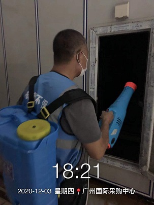 2020年11月29日至12月7日,銀康進(jìn)行廣州國(guó)際采購(gòu)中心展館-廣州設(shè)計(jì)周展會(huì)保潔及防疫消毒服務(wù)。 設(shè)計(jì)周開展期間: 空調(diào)機(jī)房消毒服務(wù): 展內(nèi)消毒服務(wù):
