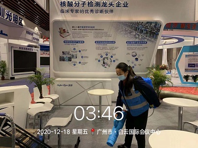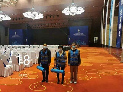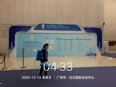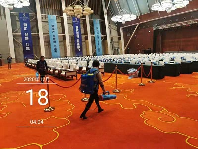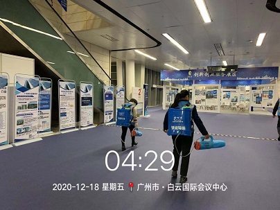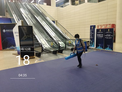 2020年12月18日,銀康對廣州白云國際會議中心-海交會活動現(xiàn)場進行:東方廳、花城廳、珠江廳及3號樓大堂進行防疫消毒服務(wù)。以下是進行消毒服務(wù)的相關(guān)圖片: 東方廳消毒: 花城廳消毒: 珠江廳消毒: 3號樓大堂消毒: