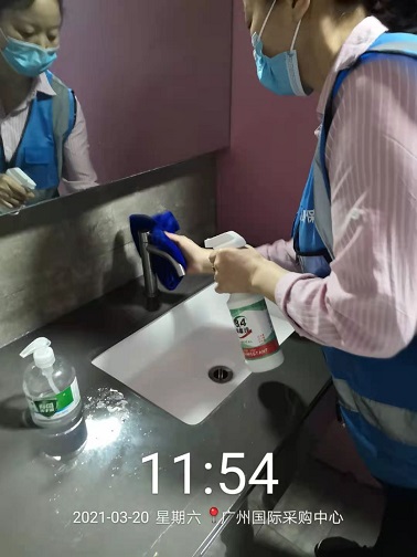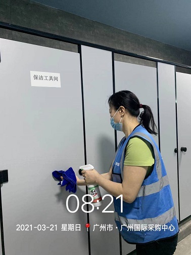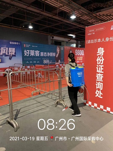 2021年3月16-21日,銀康公司承辦廣州國際采購中心展館-華夏家博會保潔及防疫消毒服務(wù),以下是進(jìn)行保潔及防疫消毒服務(wù)的相關(guān)圖片: 場外圖片: 保潔及消毒服務(wù)圖片: