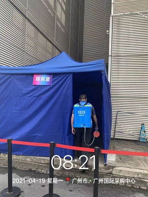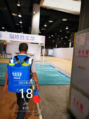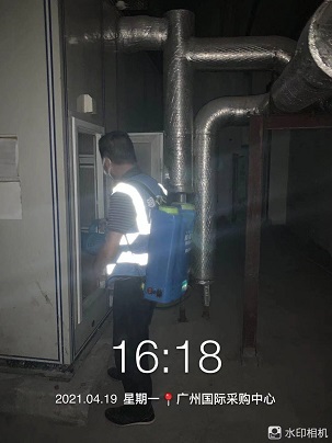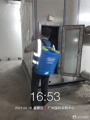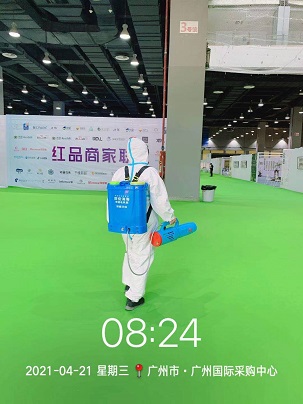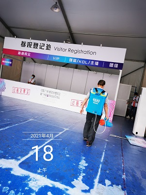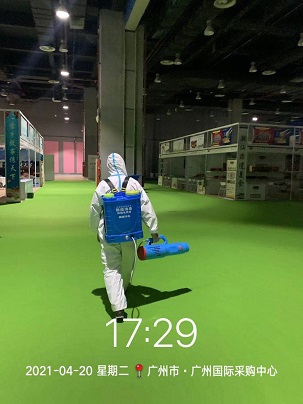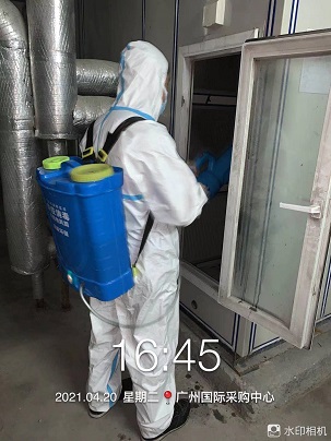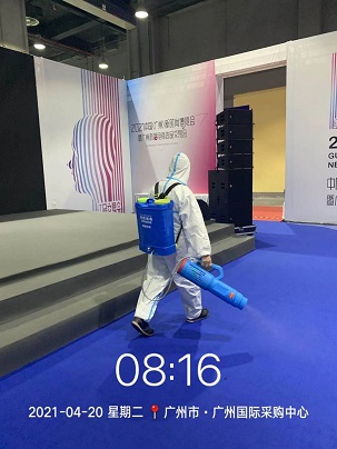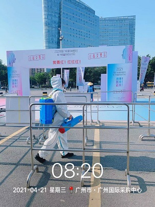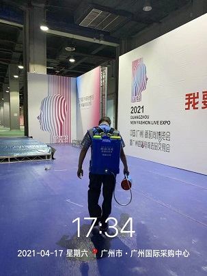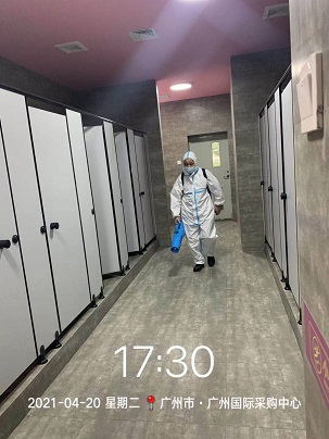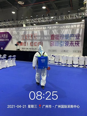 2021年4月16-21日,銀康公司承包廣州國際采購中心-中國(廣州)新時尚博覽會暨廣州直播電商選品交易會防疫消毒服務(wù),以下是進行防疫消毒服務(wù)的相關(guān)圖片: 場景圖片: 消毒圖片: 4月16日: 4月17日: 4月18日: 4月19日: 4月20日: 4月21日: