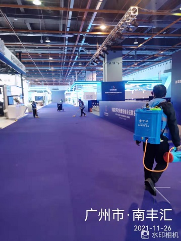 2021年11月22日-28日,銀康公司承包南豐國際會展中心-2021(第十六屆)中國電子政務(wù)論壇暨首屆數(shù)字政府建設(shè)峰會-展館保潔及防疫消毒服務(wù)。展會照片: 保潔及消毒照片: